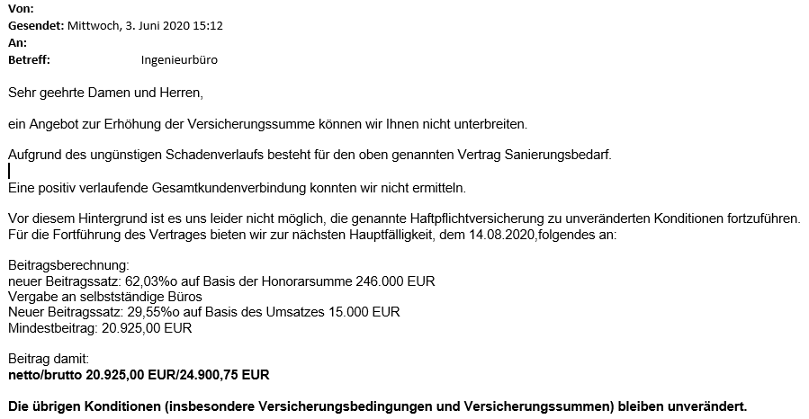 Mandant musste für ein Bauvorhaben die Versicherungssumme erhöhen